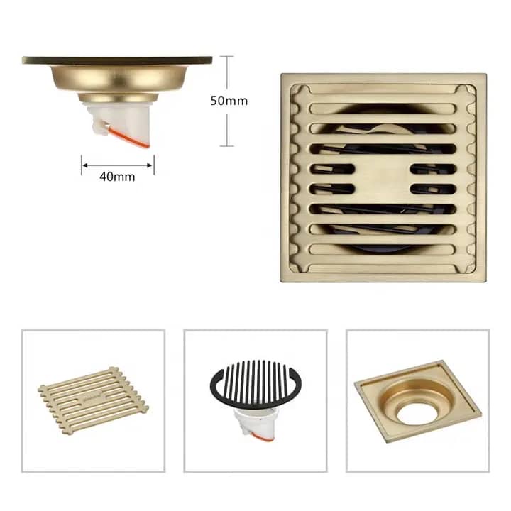 Transform your bathroom’s drainage system with the 10x10cm Gold-Tone Linear Floor Drain. Combining durability with a luxurious gold finish, this compact drain is ideal for enhancing modern and elegant bathroom designs. Its precision-engineered linear pattern ensures efficient water flow while maintaining a clog-resistant surface. Whether used in showers, wet rooms, or laundry areas, this floor drain adds a touch of sophistication to functional spaces.