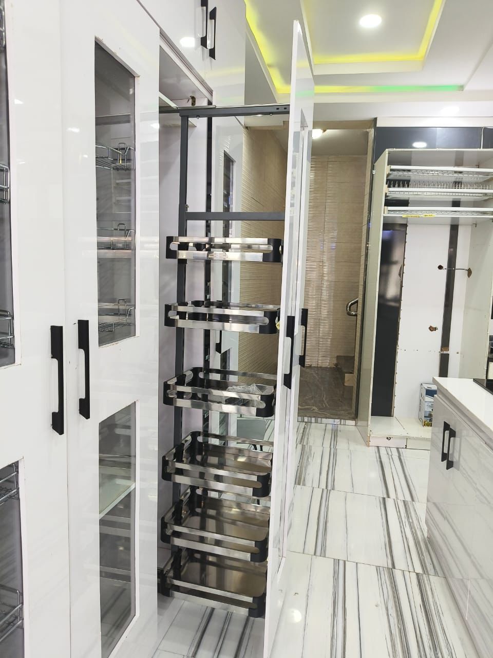 Enhance your kitchen’s organization with the 6 Step Pullout Aluminum Pantry Unit, designed to maximize storage while keeping your space neat and accessible. This innovative pantry unit features six pullout shelves, each crafted from high-quality aluminum for durability and easy maintenance. The smooth pullout mechanism allows effortless access to every tier, even when the unit is tucked away. Its sleek aluminum frame offers a modern, minimalist aesthetic that complements any contemporary kitchen design. Ideal for organizing dry goods, spices, and kitchen accessories, this pantry unit brings both practicality and style to your kitchen, making it easier than ever to store and retrieve items.