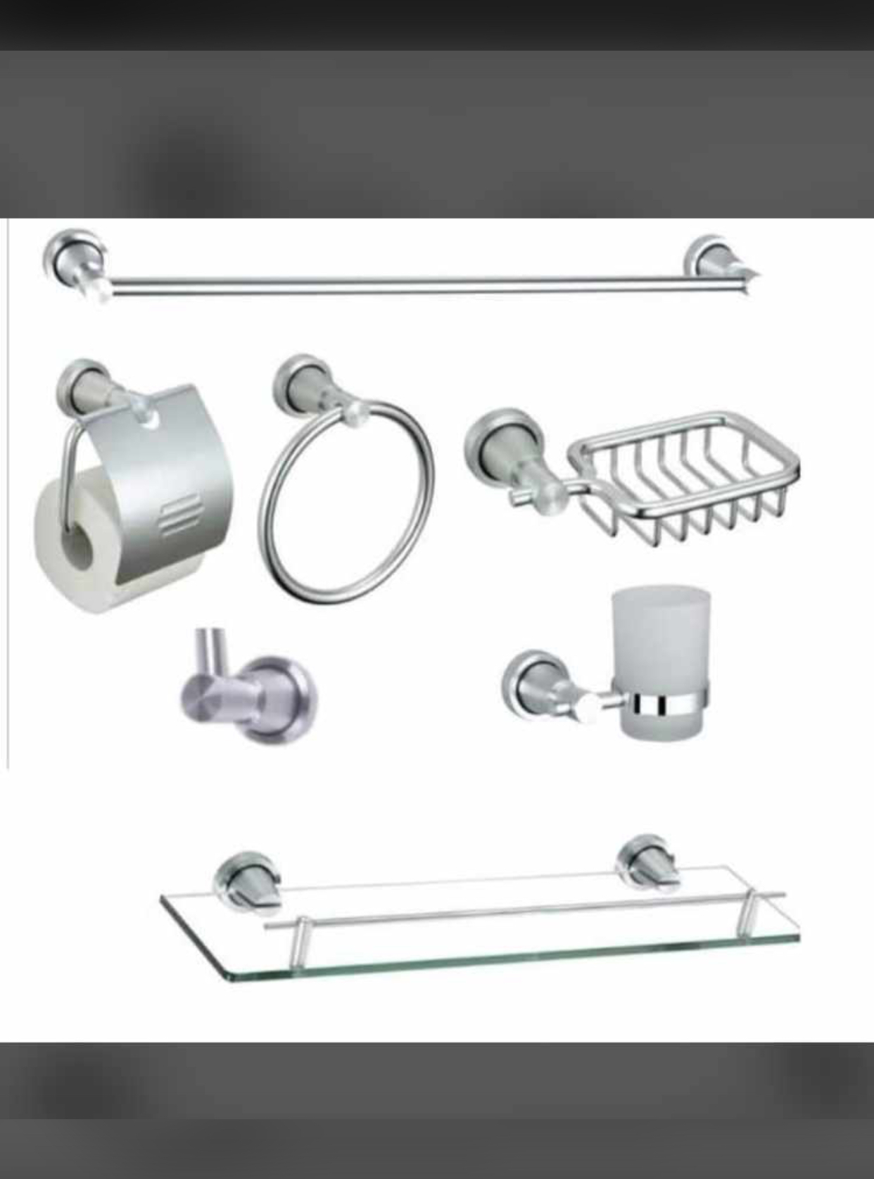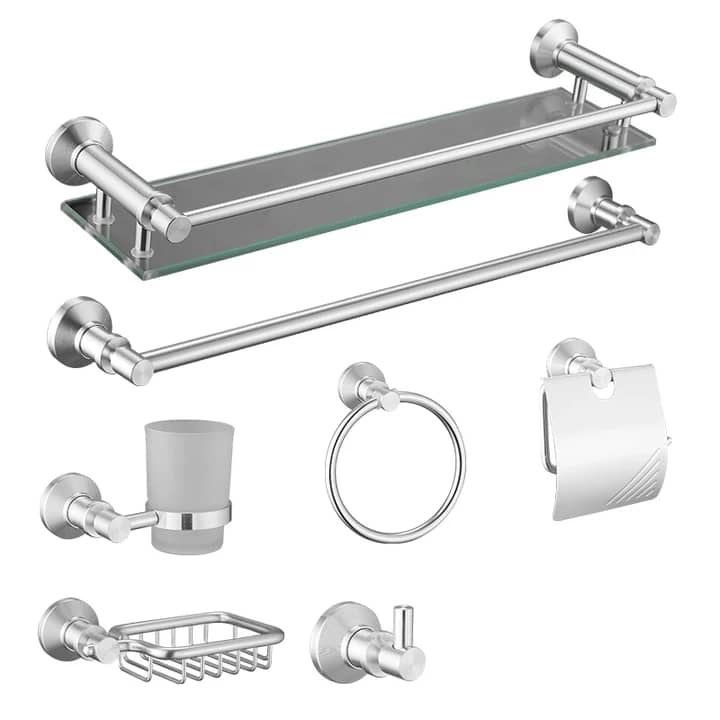 Enhance your bathroom with the Aluminum 7-Piece Set of Bathroom Accessories. Featuring a sleek aluminum finish and a modern design, this set combines durability with practical functionality for a sophisticated and cohesive bathroom look.
