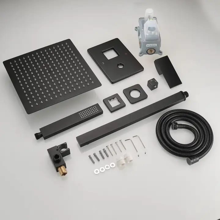 The Black Four-Function Concealed Shower Mixer offers a sleek, modern solution for controlling your shower with ease and precision. Designed to blend seamlessly into your bathroom, this concealed mixer allows for the simultaneous control of four different water functions, ensuring a customizable and luxurious showering experience. The black finish adds a sophisticated touch to your shower space, while the durable construction guarantees long-lasting performance. Ideal for contemporary bathrooms, this mixer combines style and functionality, giving you total control over your shower’s temperature and water flow.