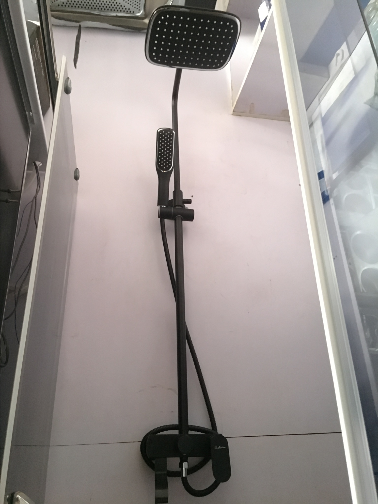 - Black heavy-gauge showerhead