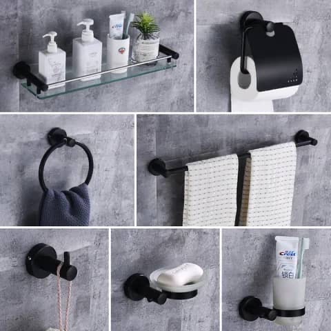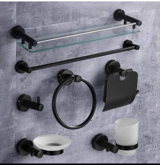 Redefine your bathroom with the Matte Black Bathroom Accessories Set, a sophisticated collection designed to offer both style and functionality. With a sleek matte black finish, this set adds a touch of modern elegance while providing all the essentials for a well-organized and polished space.